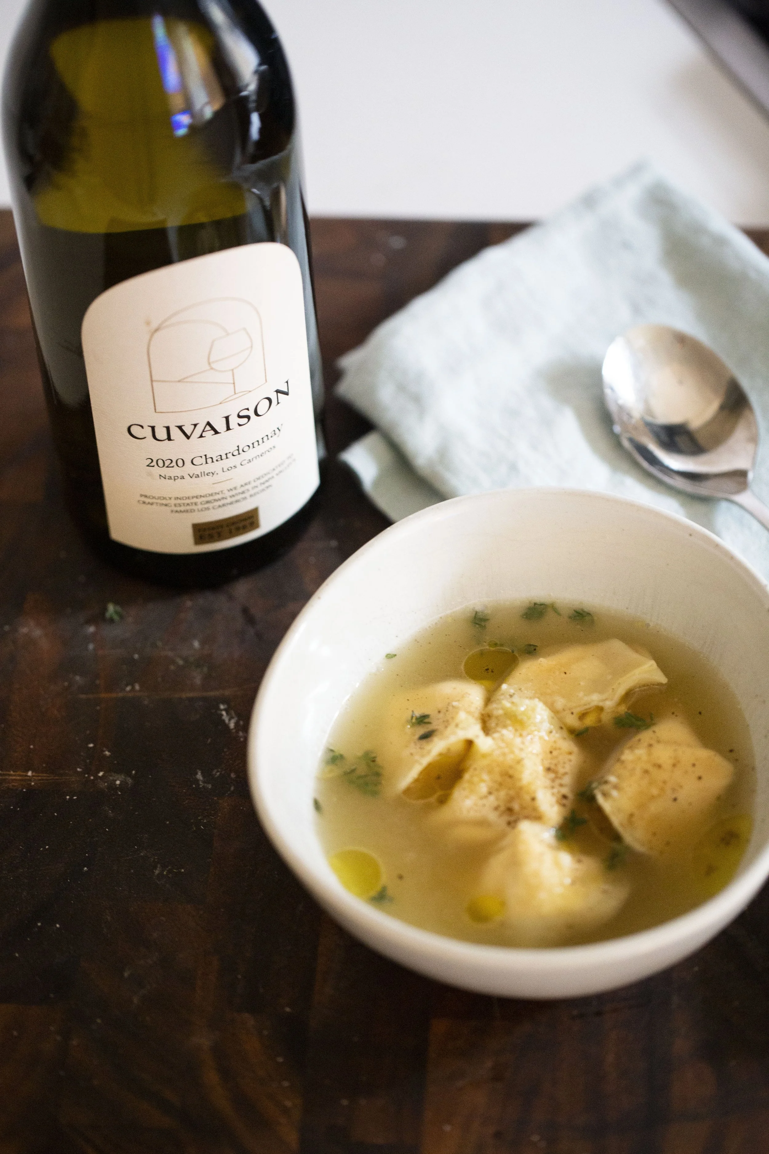Pantry-driven and a simplified version of both tortellini and brodo, this dish is a great way to make a cozy fall or winter meal that’s restaurant quality. We love pairing this dish with our 2020 Estate Chardonnay which contains similarly amazing fall notes such as baked apple, vanilla, and pear.